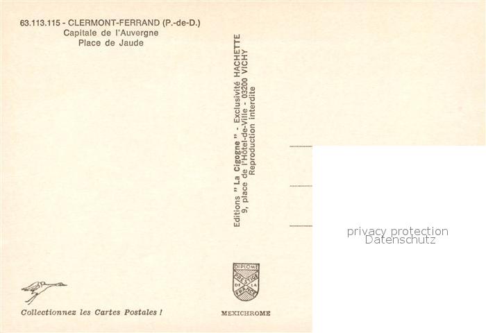 13603269 Clermont-Ferrand Capitale de l’Auvergne Place de Jaude postalisch nicht gelaufen Erhaltung siehe scans [WerneD78] Wern Katcode 11170063263113