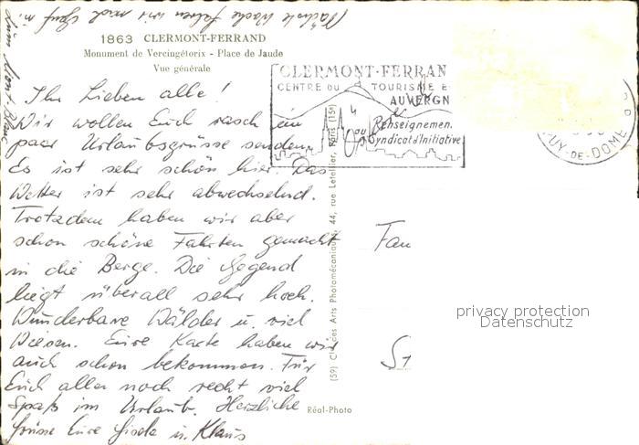 12180104 carte postale Clermont Ferrand Puy de Dome postalisch gelaufen Erhaltung siehe scans KatCode: 11170063263113