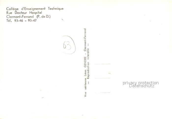 13219727 Clermont Ferrand Puy de Dome College d Enseignement Technique Vue Aerienne postalisch nicht gelaufen Erhaltung siehe scans [PaolaD17] KatCode: 11170063263113