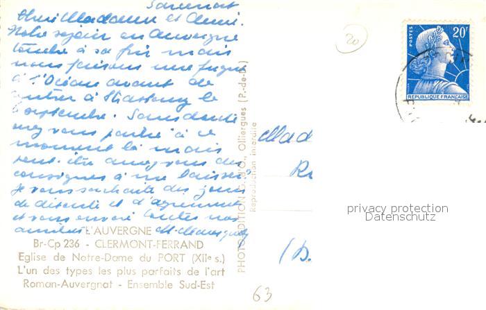 13531682 carte postale Clermont Ferrand Puy de Dome Eglise de Notre Dame du Port postalisch gelaufen Erhaltung siehe scans [LiesaD40] KatCode: 11170063263113