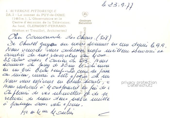 13521960 Clermont Ferrand Puy de Dome Fliegeraufnahme Observatoire postalisch nicht gelaufen Erhaltung siehe scans [KathaD81] KatCode: 11170063263113
