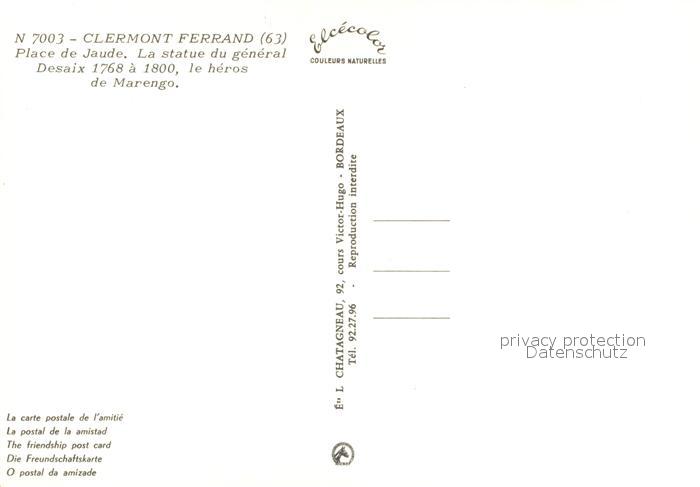 13594995 Clermont Ferrand Puy de Dome Place de Jaude La statue du general Desaix Le heros de Marengo KatCode 11170063263113