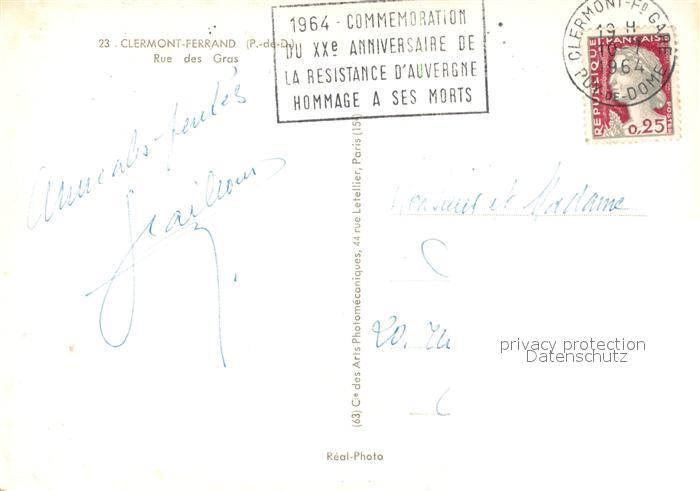13578294 carte postale Clermont Ferrand Puy de Dome Rue des Gras postalisch gelaufen Erhaltung siehe scans [WerneD78] KatCode: 11170063263113