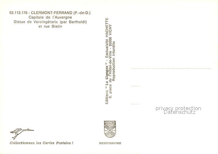 13598111 Clermont Ferrand Puy de Dome Statue de Vercingétorix par Bartholdi et Rue Blatin postalisch nicht gelaufen Erhaltung siehe scans [FriedD77] Frie Katcode 11170063263113