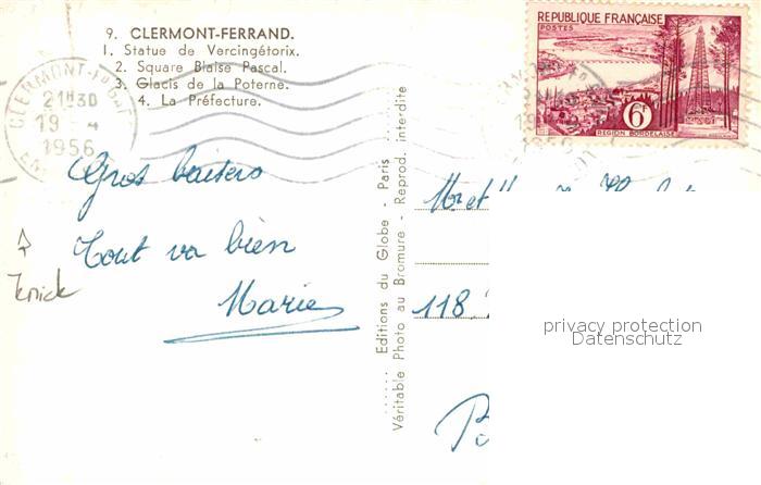 12875153 carte postale Clermont Ferrand Puy de Dome Statue de Vercingetorix Square Blaise Pascal Glacis de la Poterne Prefecture postalisch gelaufen Erhaltung siehe scans [FriedD77] KatCode: 11170063263113