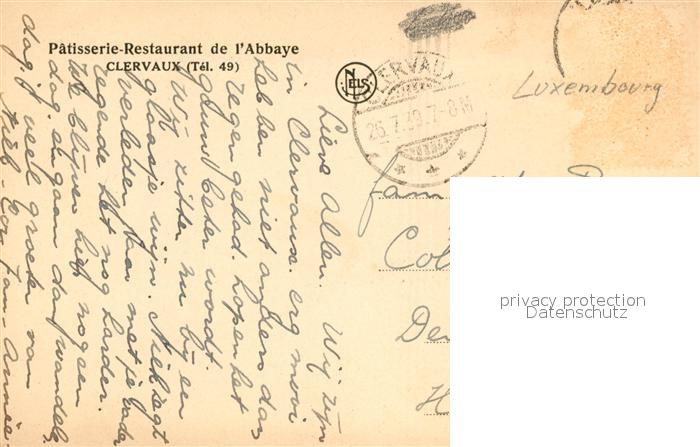 alte Postkarte Clervaux Abbaye T. Maurice Restaurant Patisserie de L Abbaye postalisch gelaufen Erhaltung siehe scans [LiesaD40]