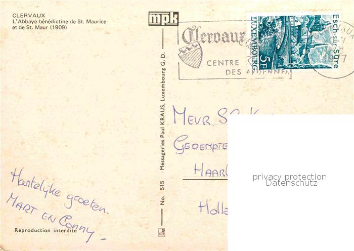 alte Postkarte Clervaux Fliegeraufnahme Abtei postalisch gelaufen Erhaltung siehe scans [AndreD76]