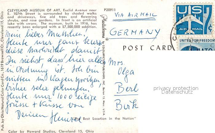 72926890 old postcard Cleveland Ohio Cleveland Museum of Art postalisch gelaufen Erhaltung siehe scans [NatalD47] KatCode: 14140370000000