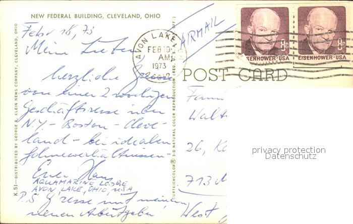 71969229 old postcard Cleveland Ohio New Federal Building postalisch gelaufen Erhaltung siehe scans KatCode: 14140370000000
