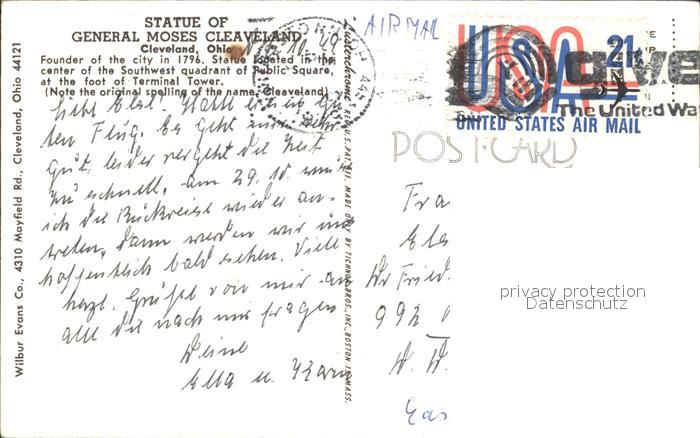 72134182 old postcard Cleveland Ohio Statue of General Moses Cleaveland postalisch gelaufen KatCode: 14140370000000