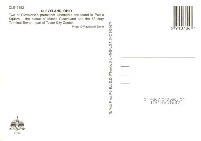 73716889 Cleveland Ohio Statue of Moses Cleveland and Termin Tower City Center postalisch nicht gelaufen Erhaltung siehe scans [FriedD77] KatCode: 14140370000000