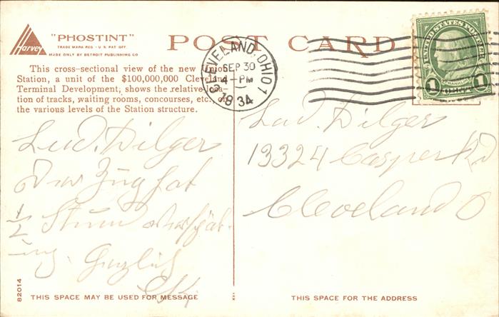 11321354 old postcard Cleveland Ohio Union Station postalisch gelaufen gute Erhaltung KatCode: 14140370000000