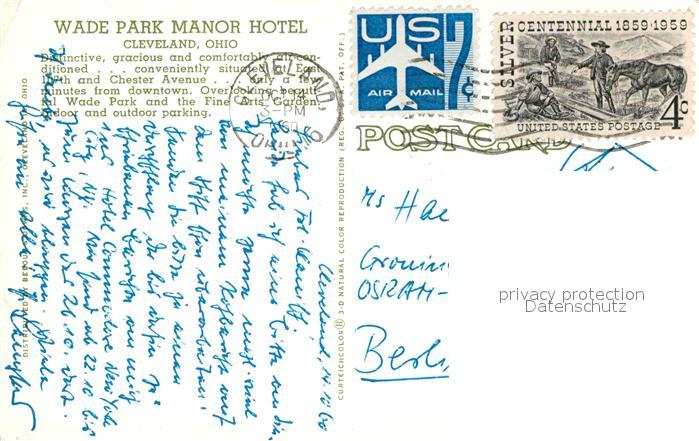 72925334 old postcard Cleveland Ohio Wade Park Manor Hotel Lake postalisch gelaufen Erhaltung siehe scans [FriedD77] KatCode: 14140370000000