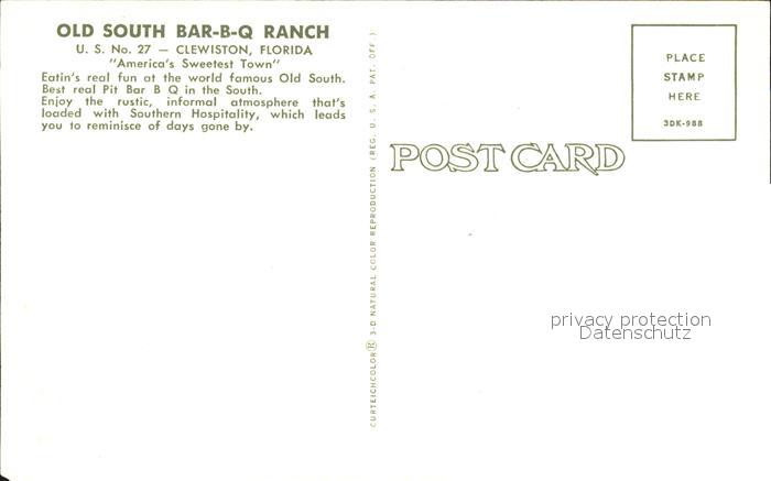 72421715 Clewiston Old South Bar B Q Ranch postalisch nicht gelaufen Erhaltung siehe scans KatCode: 14140110000000