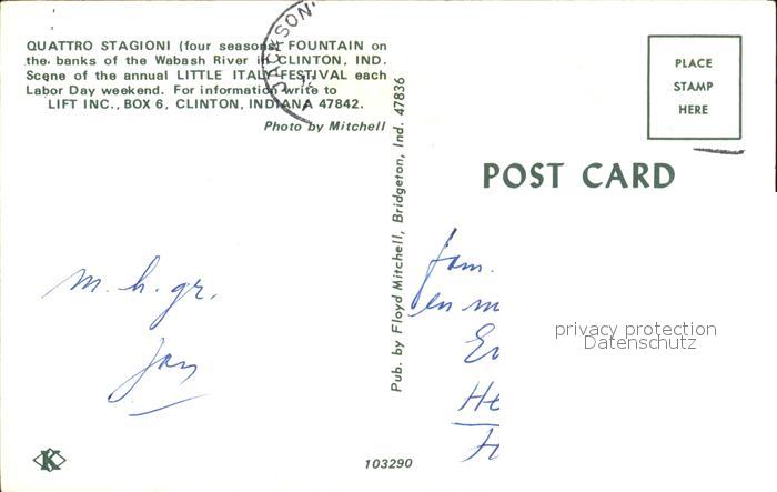 72498495 old postcard Clinton Indiana Quattro stagioni Fountain postalisch gelaufen Erhaltung siehe scans KatCode: 14140160000000