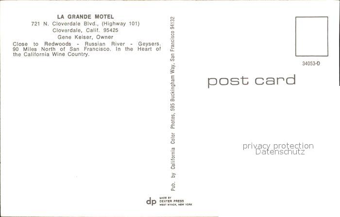 72091334 Cloverdale California Grande Motel postalisch nicht gelaufen Erhaltung siehe scans KatCode: 14140050000000