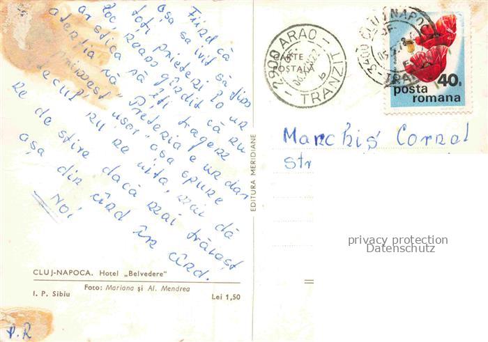 74101661 old postcard CLUJ-NAPOCA Klausenburg Kolozsvar RO Hotel Belvedere postalisch gelaufen Erhaltung siehe scans [WerneD78] KatCode: 11430