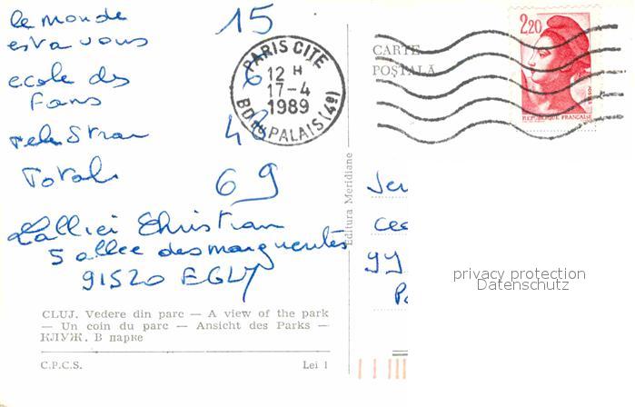 old postcard Cluj-Napoca Parkanlage postalisch gelaufen Erhaltung siehe scans [LiesaD40]