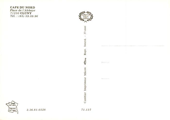 13944841 Cluny 71 Saone-et-Loire Cafe du Nord Place de l’Abbaye postalisch nicht gelaufen Erhaltung siehe scans [WerneD78] Wern Katcode 11170071571137