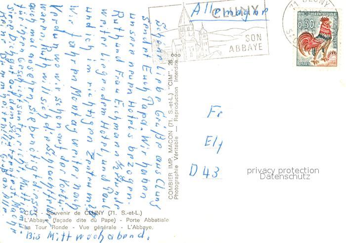 13161928 carte postale Cluny Kloster Turm postalisch gelaufen Erhaltung siehe scans [KathaD81] KatCode: 11170071571137