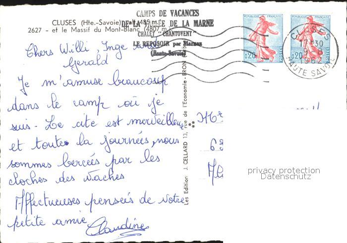 12450113 carte postale Cluses Massif du Mont Blanc postalisch gelaufen Erhaltung siehe scans KatCode: 11170074274081