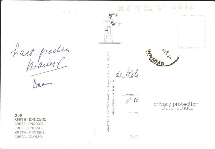 old postcard Cnossos Kreta Ruine Mosaik postalisch gelaufen Erhaltung siehe scans