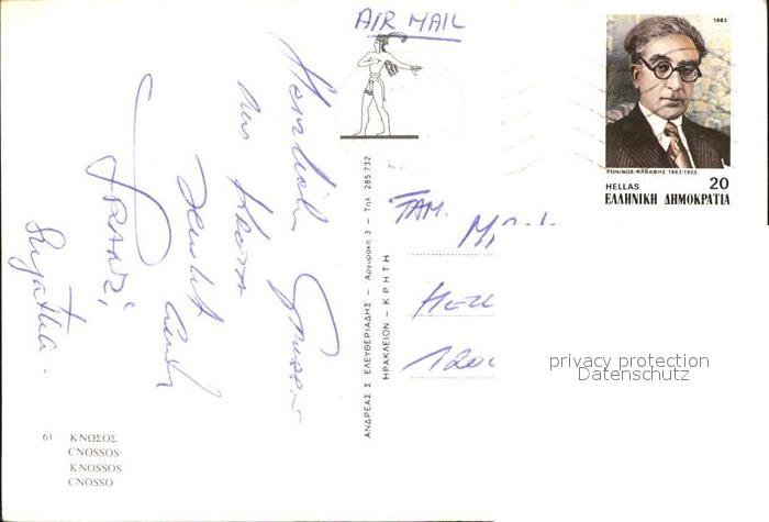 old postcard Cnossos Kreta Vase Ruine postalisch gelaufen Erhaltung siehe scans