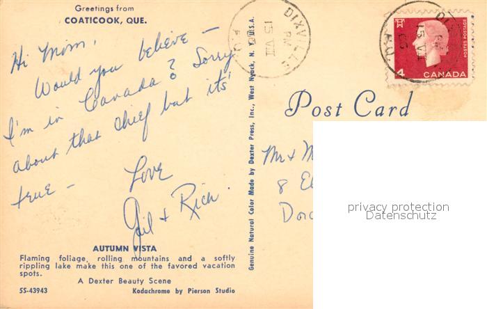 old postcard Coaticook Autumn Vista postalisch gelaufen Erhaltung siehe scans [WerneD78]