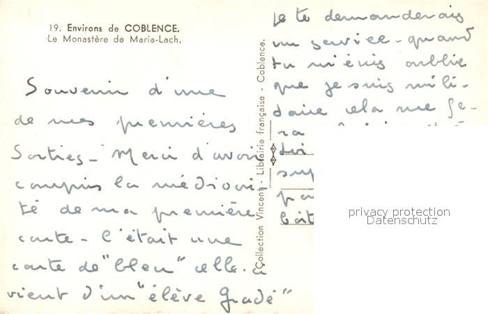 73043265 Coblence Coblenz Koblenz Le Monastere de Maria Lach postalisch nicht gelaufen Erhaltung siehe scans [WerneD78] KatCode: 11110007111000