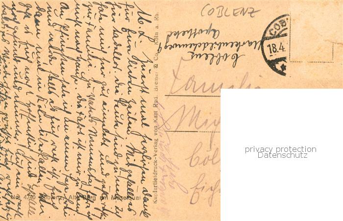 73817561 alte Postkarte Coblenz Koblenz Alte Burg am Moselquai postalisch gelaufen Erhaltung siehe scans [FriedD77] KatCode: 11110007111000
