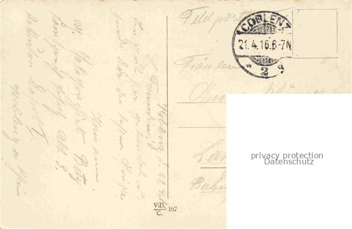74122167 alte Postkarte Coblenz KOBLENZ Kaiserin-Augusta-Anlagen Denkmal Feldpost postalisch gelaufen Erhaltung siehe scans [FriedD77] KatCode: 11110007111000