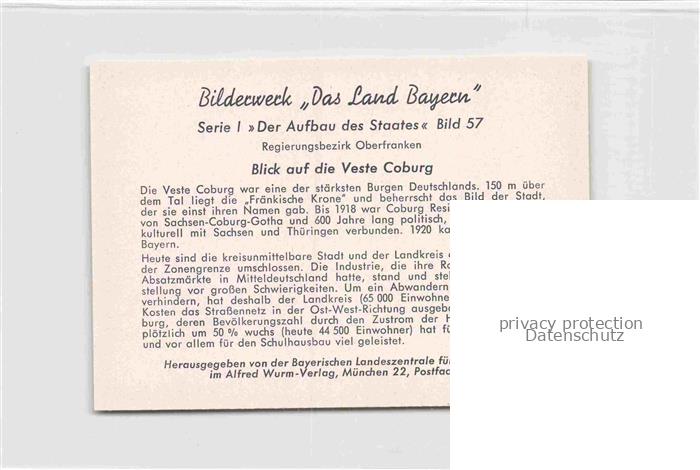 Coburg Bayern Blick auf Veste Coburg postalisch nicht gelaufen Werbekarte (keine Postkarte) Erhaltung siehe scans [WerneD78] Werbekarte (keine Postkarte) Wern Katcode 11110009463000