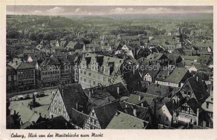 Coburg Bayern Blick von der Moritzkirche zum Markt postalisch gelaufen Erhaltung siehe scans [WerneD78] alte Postkarte Wern Katcode 11110009463000