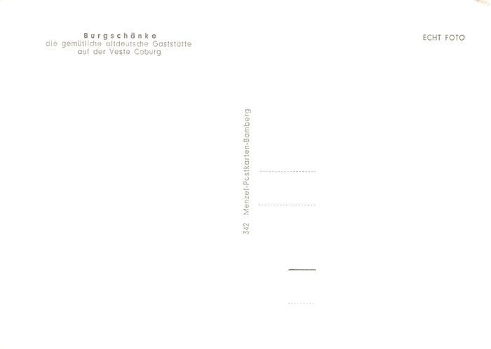 73892817 Coburg Bayern Burgschaenke Gaststaette auf der Veste Coburg postalisch nicht gelaufen Erhaltung siehe scans [FriedD77] Frie Katcode 11110009463000