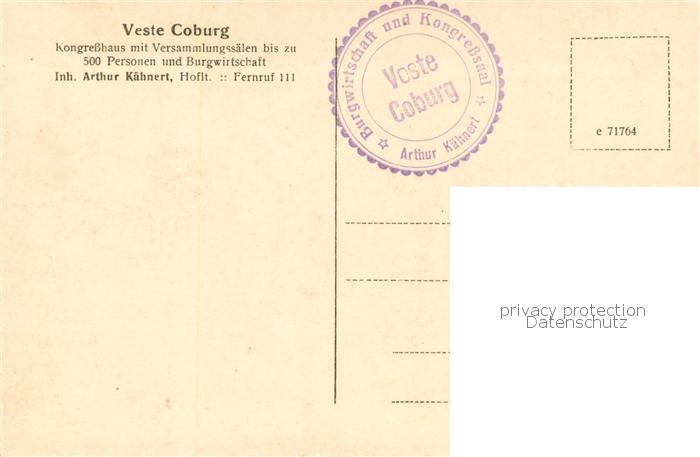 73779600 Coburg Bayern Burgwirtschaft der Veste postalisch nicht gelaufen Erhaltung siehe scans [FriedD77] Frie Katcode 11110009463000