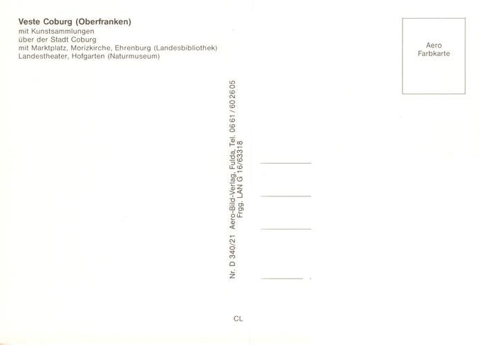 73903845 Coburg Bayern Fliegeraufnahme mit Veste Coburg postalisch nicht gelaufen Erhaltung siehe scans [FriedD77] Frie Katcode 11110009463000