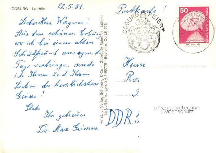 73701770 Coburg Bayern Fliegeraufnahme mit Veste Coburg postalisch gelaufen Erhaltung siehe scans [WerneD78] alte Postkarte Wern Katcode 11110009463000