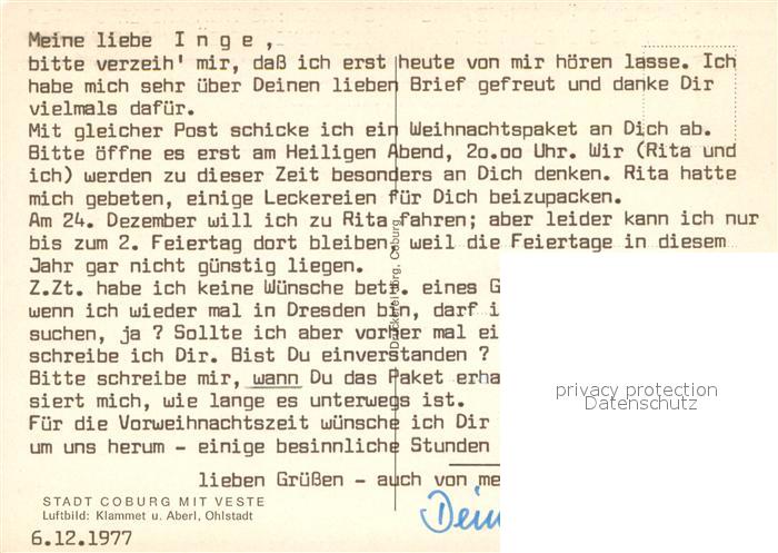 73701707 Coburg Bayern Fliegeraufnahme mit Veste Coburg postalisch nicht gelaufen Erhaltung siehe scans [WerneD78] Wern Katcode 11110009463000