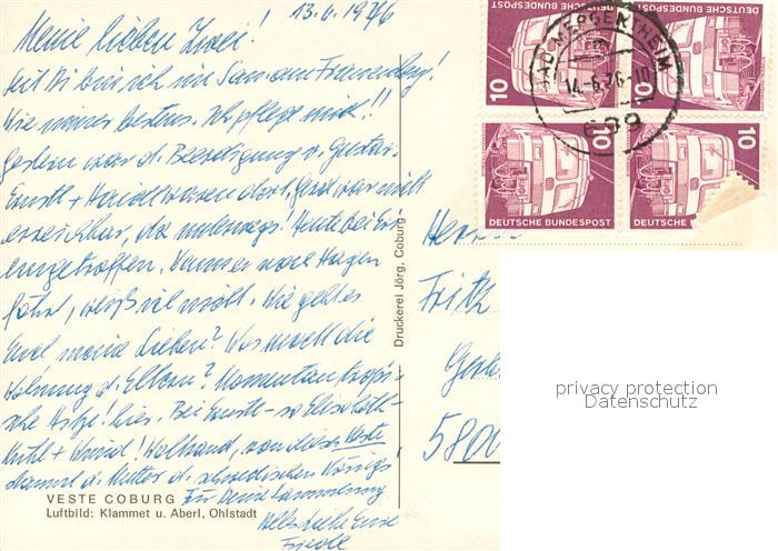 73726584 Coburg Bayern Fliegeraufnahme Veste Coburg postalisch gelaufen Erhaltung siehe scans [LiesaD40] alte Postkarte Lies Katcode 11110009463000