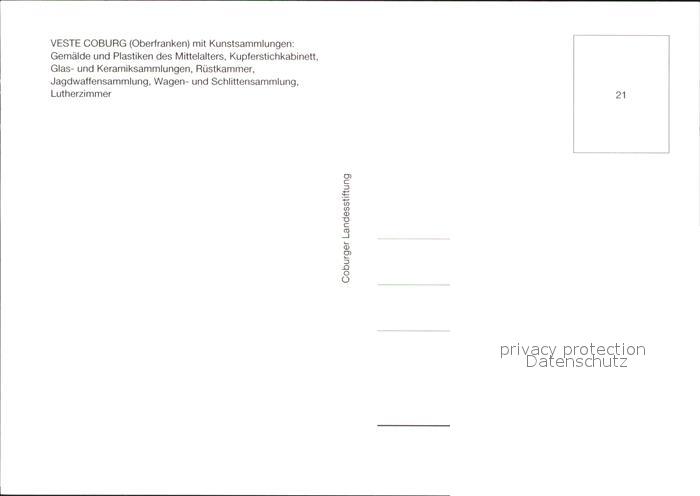 71931185 Coburg Bayern Fliegeraufnahme Veste Museum mit Lutherzimmer postalisch nicht gelaufen Erhaltung siehe scans KatCode: 11110009463000