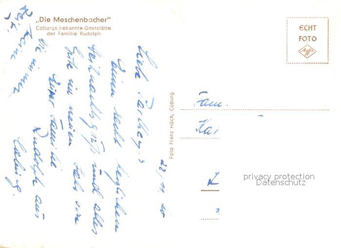 73644384 Coburg Bayern Gaststaette Die Meschenbacher Restaurant postalisch nicht gelaufen Erhaltung siehe scans [FriedD77] Frie Katcode 11110009463000