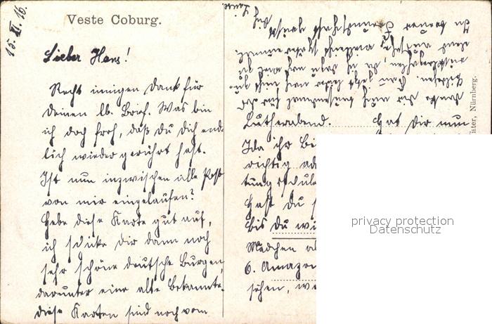 41687927 Coburg Bayern Kuenstlerkarte postalisch nicht gelaufen Erhaltung siehe scans KatCode: 11110009463000