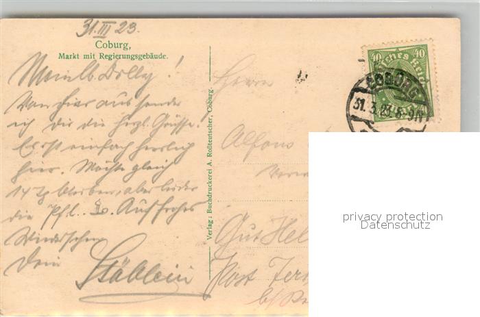 43512047 Coburg Bayern Markt Regierungsgebaeude postalisch gelaufen Erhaltung siehe scans [KathaD81] alte Postkarte Kath Katcode 11110009463000