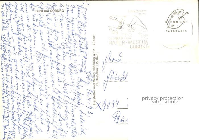 72505488 alte Postkarte Coburg Bayern Panorama Schloss postalisch gelaufen Erhaltung siehe scans KatCode: 11110009463000