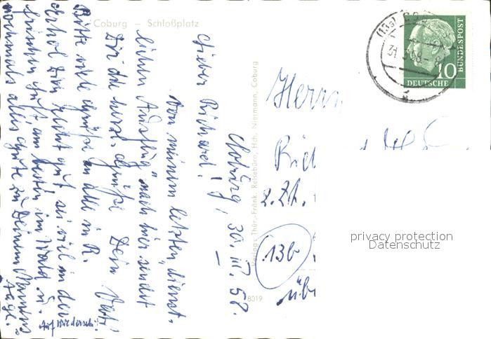 72472724 alte Postkarte Coburg Bayern Schlossplatz postalisch gelaufen Erhaltung siehe scans KatCode: 11110009463000