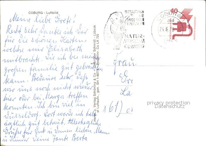 72469251 alte Postkarte Coburg Bayern Stadtbild mit Schloss Fliegeraufnahme postalisch gelaufen Erhaltung siehe scans KatCode: 11110009463000