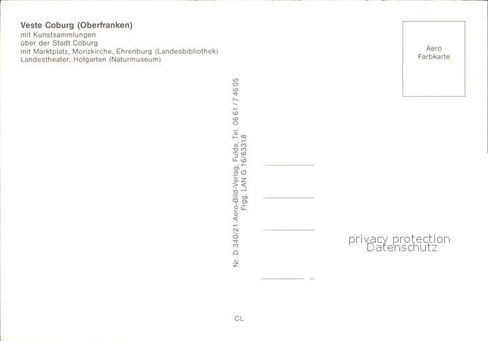 72415214 Coburg Bayern Stadtbild mit Veste Fliegeraufnahme postalisch nicht gelaufen Erhaltung siehe scans KatCode: 11110009463000