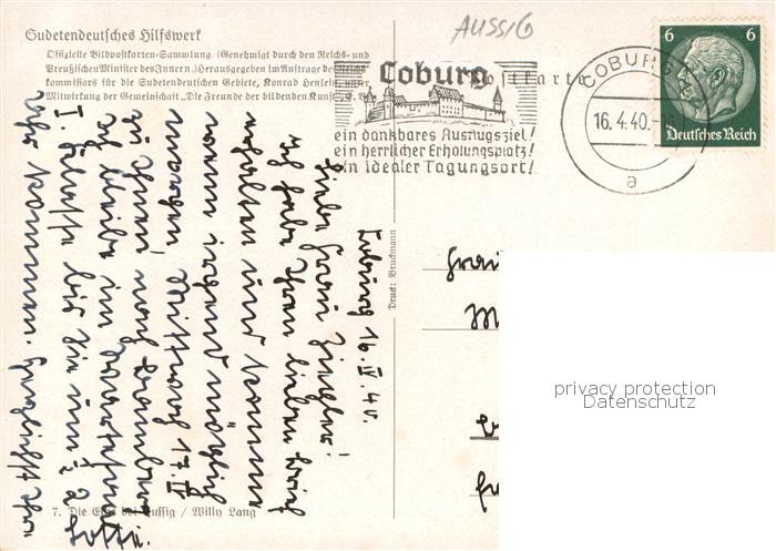 73769951 Coburg Bayern Sudetenseutsches Hilfswerk Kuenstlerkarte Willn Lang postalisch gelaufen Erhaltung siehe scans [LiesaD40] alte Postkarte Lies Katcode 11110009463000