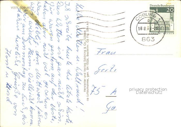 71936307 alte Postkarte Coburg Bayern Veste postalisch gelaufen Erhaltung siehe scans KatCode: 11110009463000