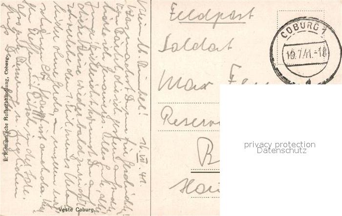 43057132 Coburg Bayern Veste postalisch gelaufen Feldpost Erhaltung siehe scans [KathaD81] Feldpost alte Postkarte Kath Katcode 11110009463000